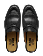 Upgrade your footwear collection with our Men’s Black Leather Backless Shoes, crafted from soft, polished genuine leather for a sleek and versatile look. Designed with a classic penny strap and durable Blake-stitched sole, these slip-on mule loafers combine timeless craftsmanship with modern convenience.
