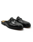 Step into timeless sophistication with our Men’s Black Leather Snaffle Bit Half Shoes, simply slide them on and step into understated sophistication—no backs, no laces, just effortless wear.
