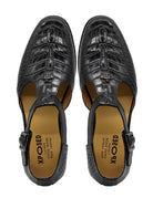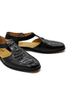 Black Printed Leather T-Strap Sandals – Closed Toe