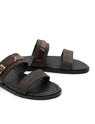 Elevate your casual footwear collection with these Men’s Dark Brown Shiny Real Leather Two Strap Sandals, featuring a bold gold buckle and shiny dot print design. Crafted from premium-quality leather, these sandals combine style, comfort, and durability for everyday wear and special occasions.