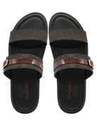 Brown Shiny Real Leather Strap Sandals
