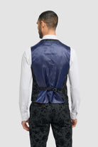 The Georgi blazer, waistcoat, and trousers feature a striking embossed floral paisley pattern, adding texture and elegance to a timeless black suit. The tailored fit creates a sharp and flattering silhouette that exudes confidence.