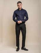 Plain Navy natural four way stretch mercerised cotton blend long sleeve men’s shirt by House of Cavani.