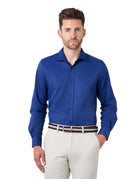 - Refresh your wardrobe with our men’s tailored fit navy shirt. Crafted from rich cotton fabric with polyester blend for smooth finish and durability. Shirt features - Classic collars, single cuff, and a curved hem, it exudes sophistication and refined style. Dress to impress with ease and elegance.