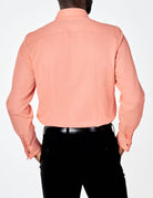 - Refresh your wardrobe with our men’s tailored fit shirt in Peach. Crafted from rich cotton fabric with polyester blend for smooth finish and durability. Shirt features – Double French Cuffs with Cufflinks, classic collars, and a curved hem, it exudes sophistication and refined style. Dress to impress with ease and elegance.