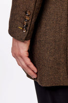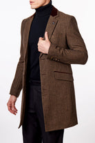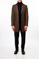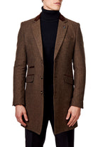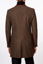 COSMO – BROWN HERRINGBONE WOOL BLEND LONG OVERCOAT