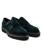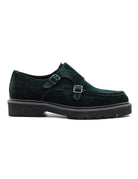 Crafted from luxurious premium green suede, these monk strap shoes showcase meticulous craftsmanship with a sleek silhouette, making them an ideal choice for weddings, business meetings, and evening occasions. The double buckle detail adds a distinctive edge to traditional formal footwear, while the modern cleated sole ensures durability, grip, and all-day wearability.