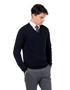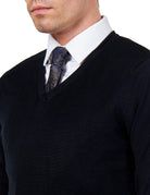 MEN’S COTTON V-NECK BLACK JUMPER FINE KNIT LIGHTWEIGHT