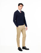 MEN’S COTTON V-NECK NAVY JUMPER FINE KNIT LIGHTWEIGHT