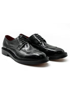 Our classy & dressier lace-up derby shoes are handmade from polished real leather, features split-toe apron design with triple stitching, a longer, more angled toe, and a closed channel sole construction, making it a versatile shoe for both formal and casual wear