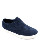 Upgrade your style with men's navy suede sports sneakers featuring brogue detailing. Wear with or without laces, soft suede finish, leather lining, and durable rubber sole for all-day comfort.