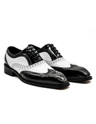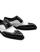 Featuring a sleek black-and-white wingtip design with traditional perforated detailing, these shoes are inspired by the iconic 1920s Gatsby era. Perfect for weddings, parties, dance events, and formal occasions, they also add a sharp retro edge to modern outfits.