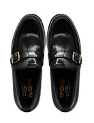 Bring back retro styling with our black polished leather monks. Handcrafted from real leather, these loafers feature a round toe box with think sole for an added vintage look.