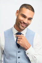 Step into refined summer elegance with the Cavani Miami Sky Blue Linen Blend 3-Piece Suit. Designed for men who want to look sharp while staying cool, this pastel blue suit is perfect for weddings, garden parties, race days, and destination celebrations.