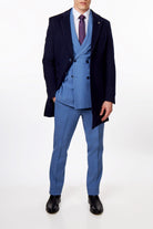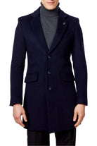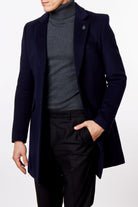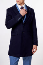 NATE - NAVY LONG WOOL BLEND OVERCOAT