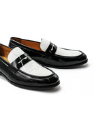 Retro Patent Leather Black & White Penny Loafers