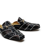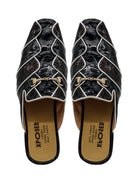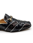 These two-tone snakeskins print shiny patent real leather backless mules bring a modern edge to classic footwear. Made from high-shine genuine patent leather, they feature a striking two-tone snakeskin embossed print with white trims. These loafers deliver standout style and premium craftsmanship, making them ideal for parties, weddings, ceremonies, and native wear.