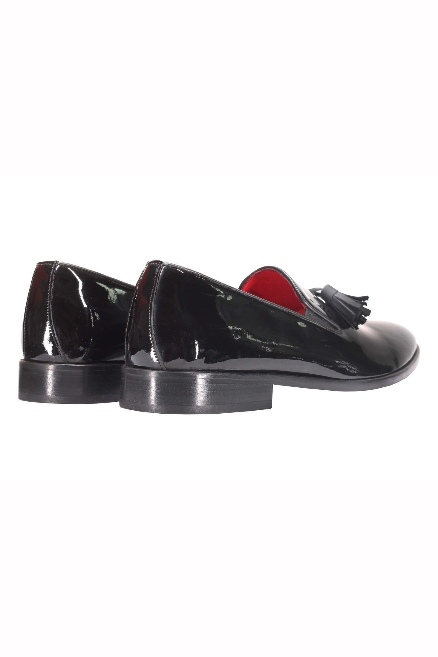 SHINY LEATHER TASSEL LOAFER IN BLACK